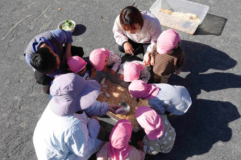 10時30分からは5歳児クラスと市内のおそき保育園の5歳児が遊びに来てくれ、一緒に触れ合いを楽しみました。
