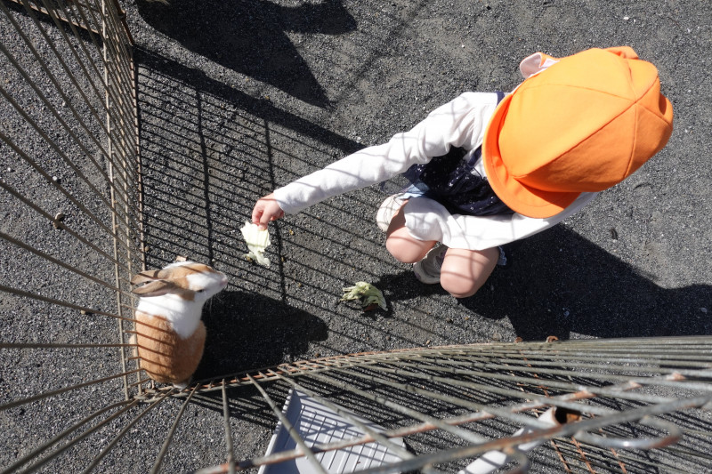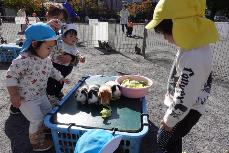 幼児クラスは自分で積極的に抱っこし、動物たちに野菜をあげる事が出来ました。