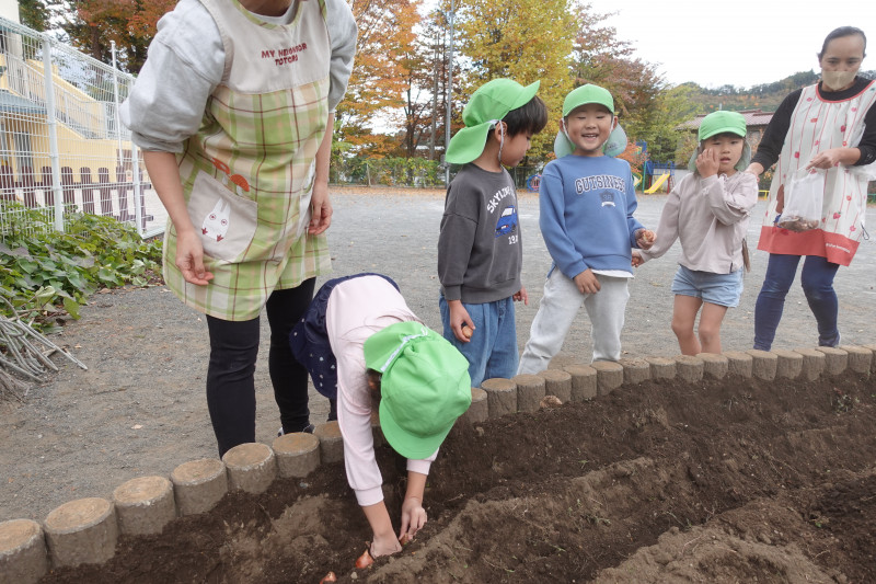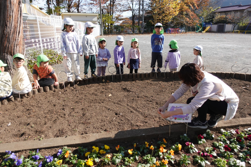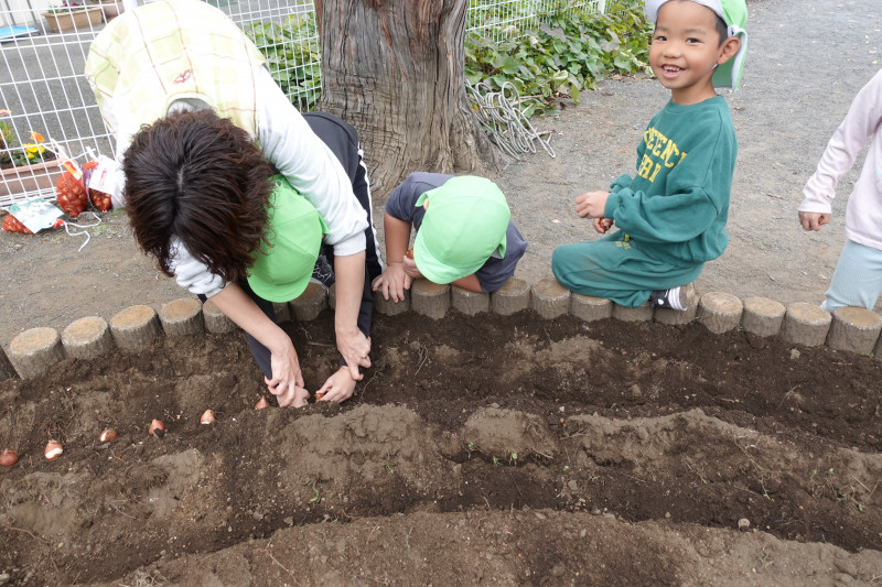 毎年卒園の記念として3月から4月にかけて綺麗な花が咲くように、年長さんがちゅうりっぷの球根を植えてくれます。