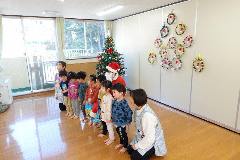 サンタクロース登場~!で子ども達のテンションがいっきに上がり目がキラキラに。