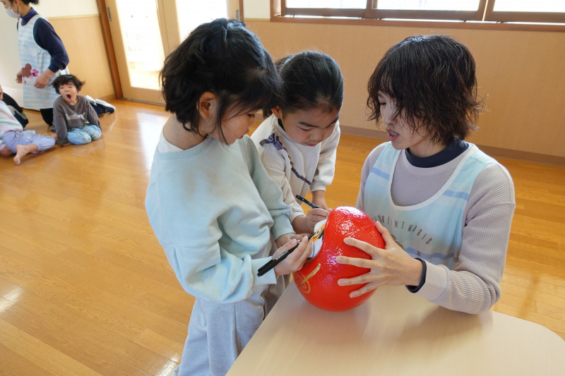 4歳児、5歳児が保育園を代表して目を入れました。