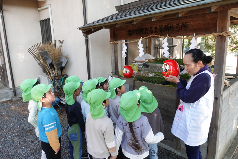 だるま集会でだるまの由来を園長先生から聞きました。