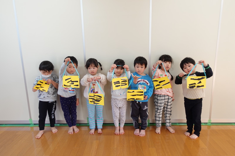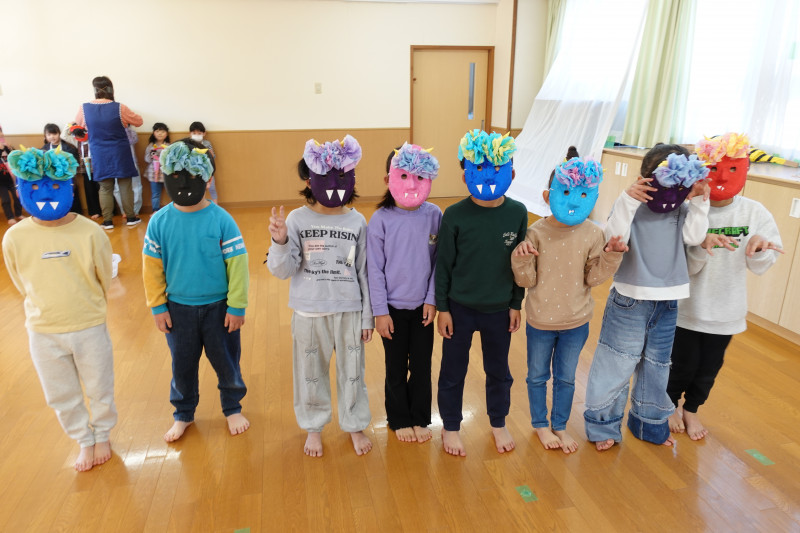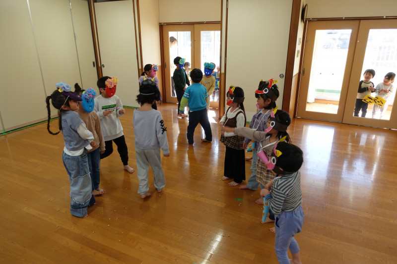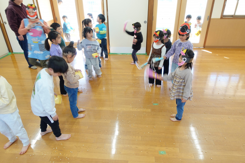 最後は4歳児が鬼役になり、5歳児が豆まきをしました。