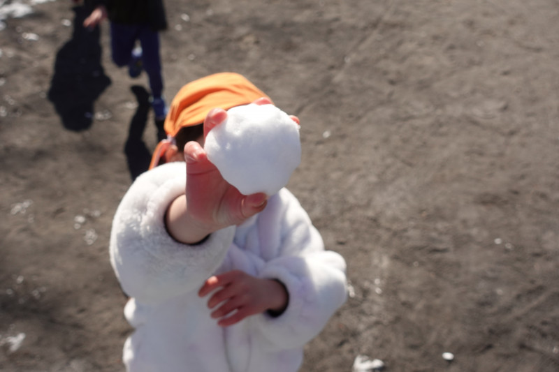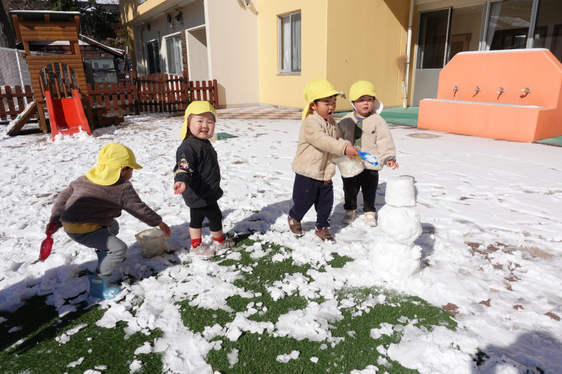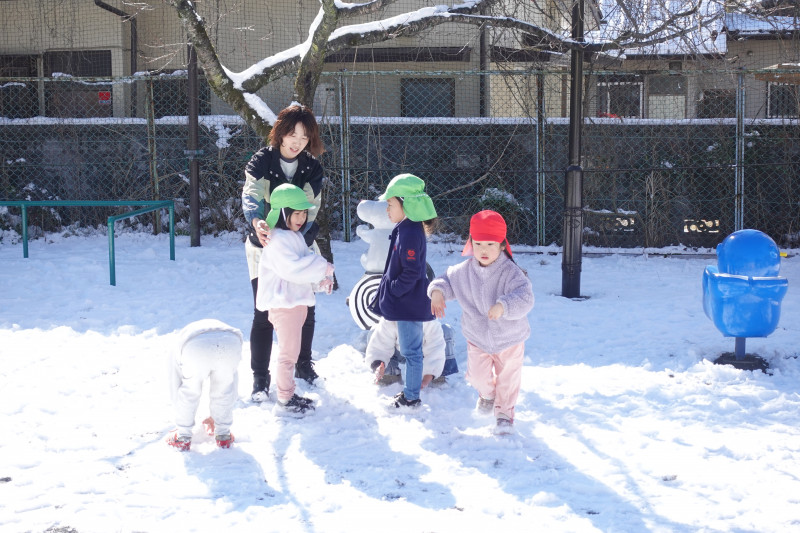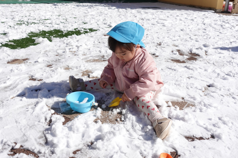 子どもたちはワクワクした様子で登園し、さっそく雪遊び開始です。