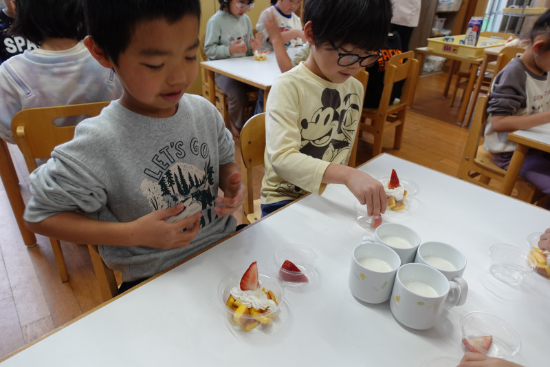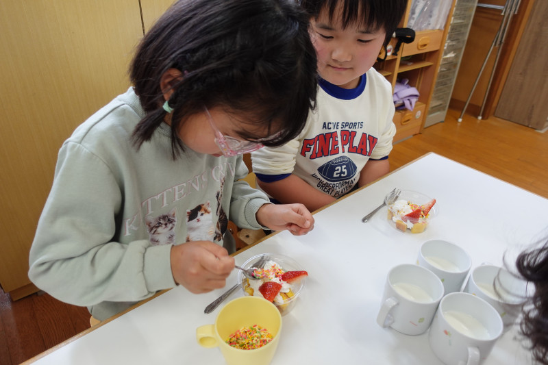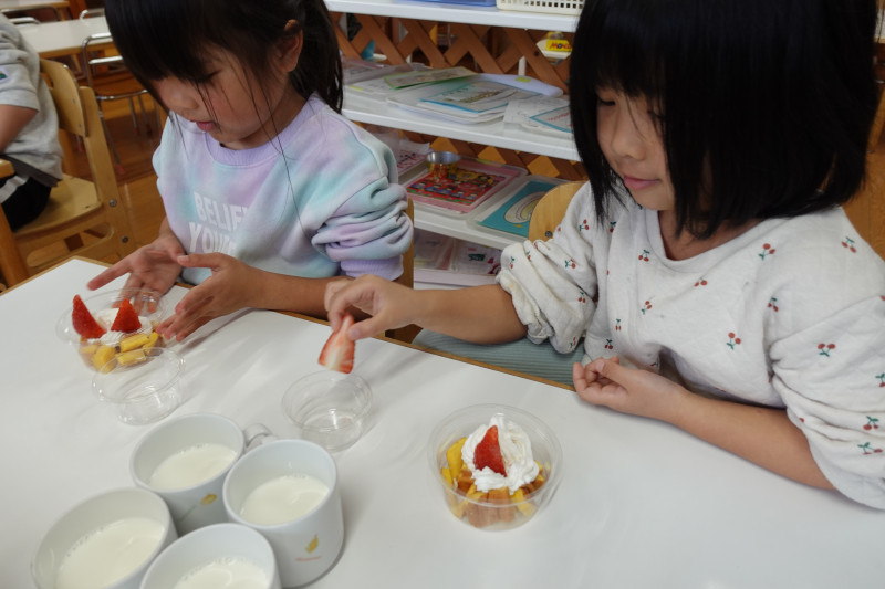 年長クラスはパフェ作りに挑戦しました。