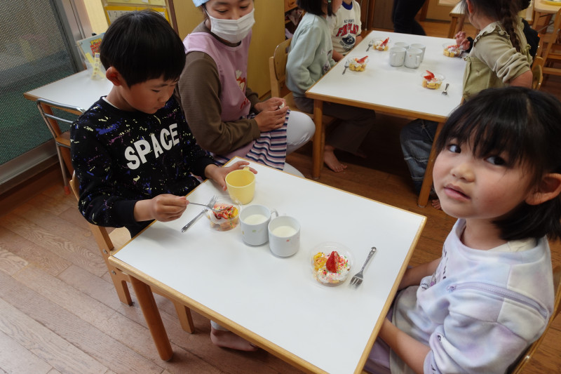 そして午後はお祝いのイチゴパフェでした。