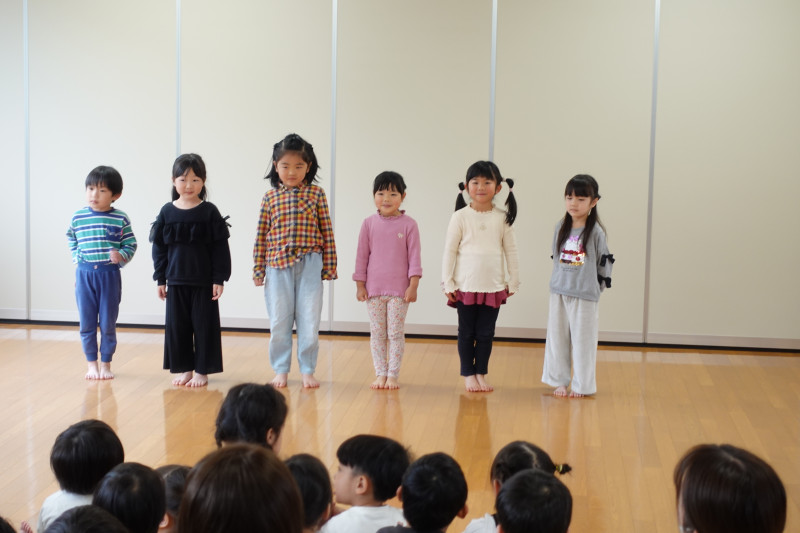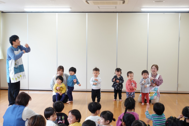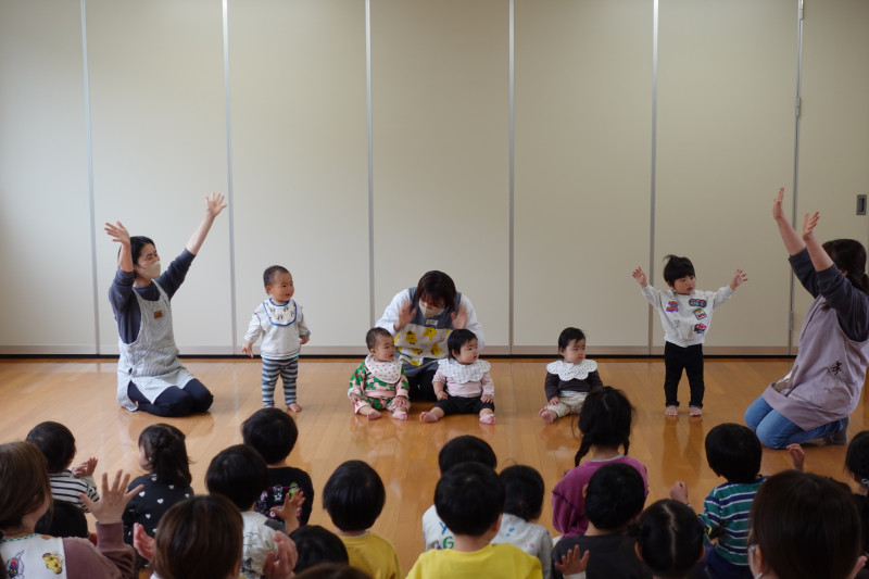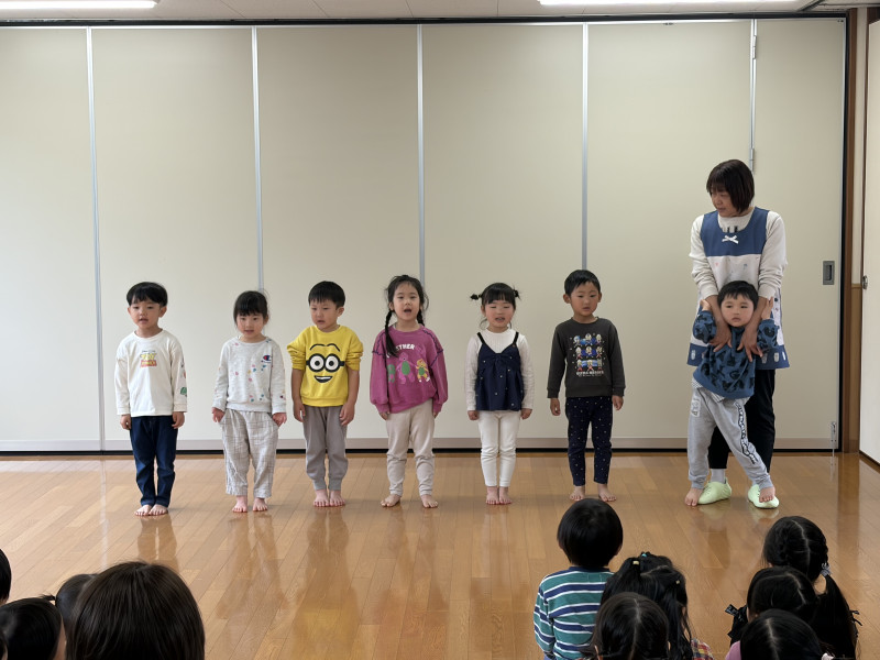 園長先生の挨拶から始まり、0歳児クラスから順番にお祝いの出し物を披露してくれました。