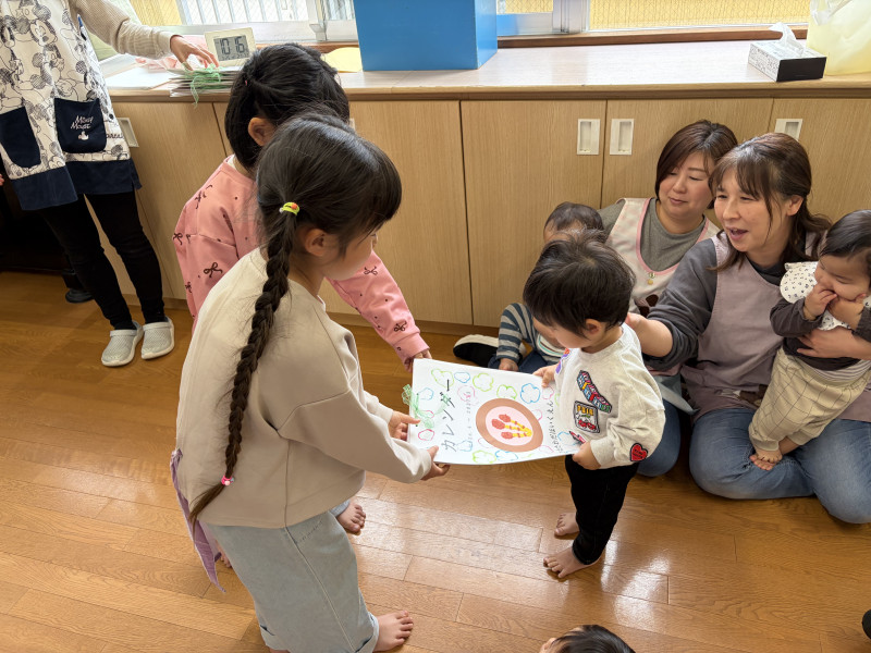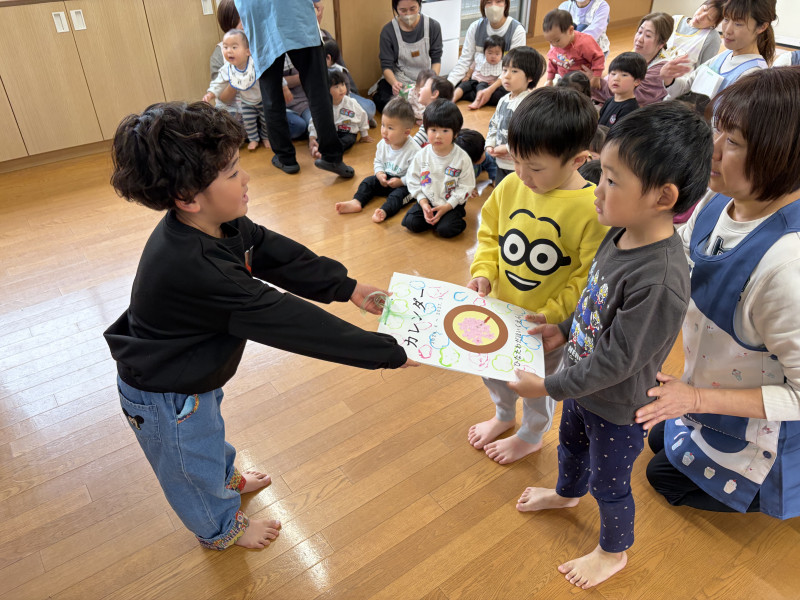 今年度いっぱいで退職する園長先生にも感謝を込めてカレンダーを渡しました。