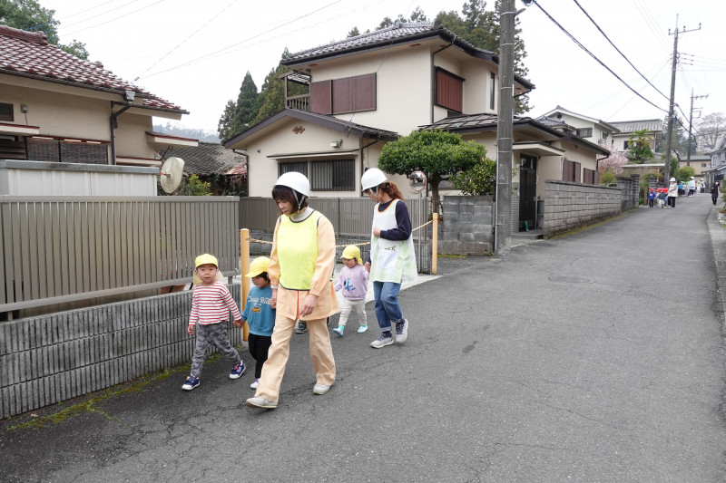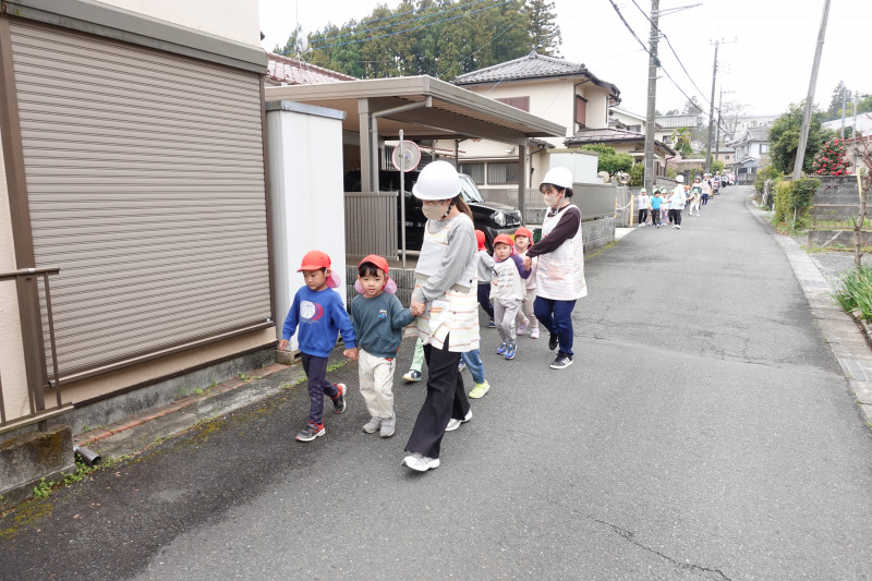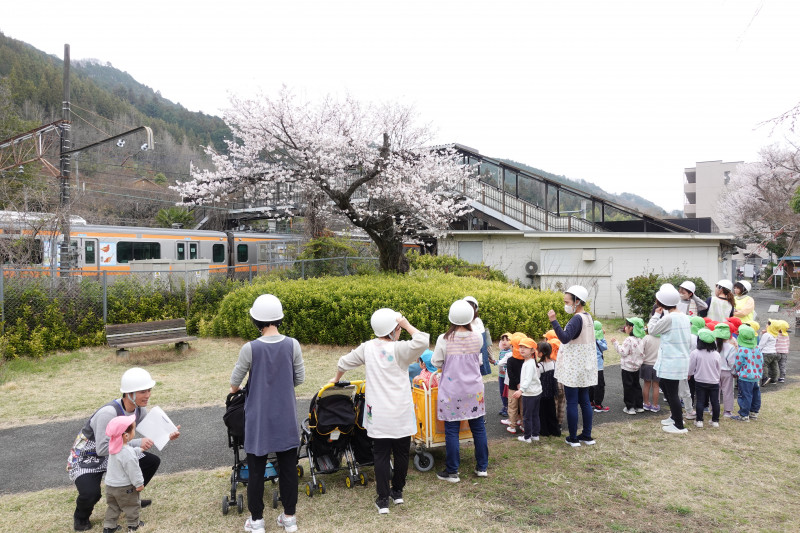 保育園から宮ノ平駅前の広場まで各クラスごと避難しました。